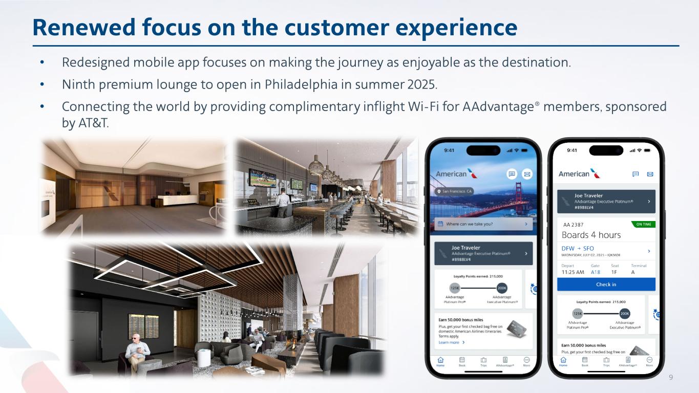 the strategy and coordinate the implementation of initiatives that define customers’ journeys with American. The company recently announced complimentary high-speed satellite Wi-Fi for AAdvantage® members beginning in January 2026, sponsored by AT&T. With this, American will offer free inflight connectivity on more aircraft than any other carrier.