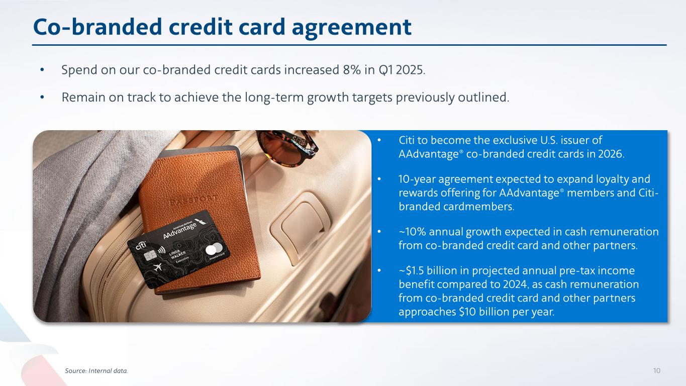 American and Citi continue to work toward the implementation of their exclusive and expanded partnership, which starts in 2026, and American remains on track to achieve the long-term growth targets the company previously outlined. In the first quarter, AAdvantage® enrollments were up 6% year over year with spending on the airline’s co-branded credit cards up 8% year over year, underscoring the continued value of American’s loyalty program.