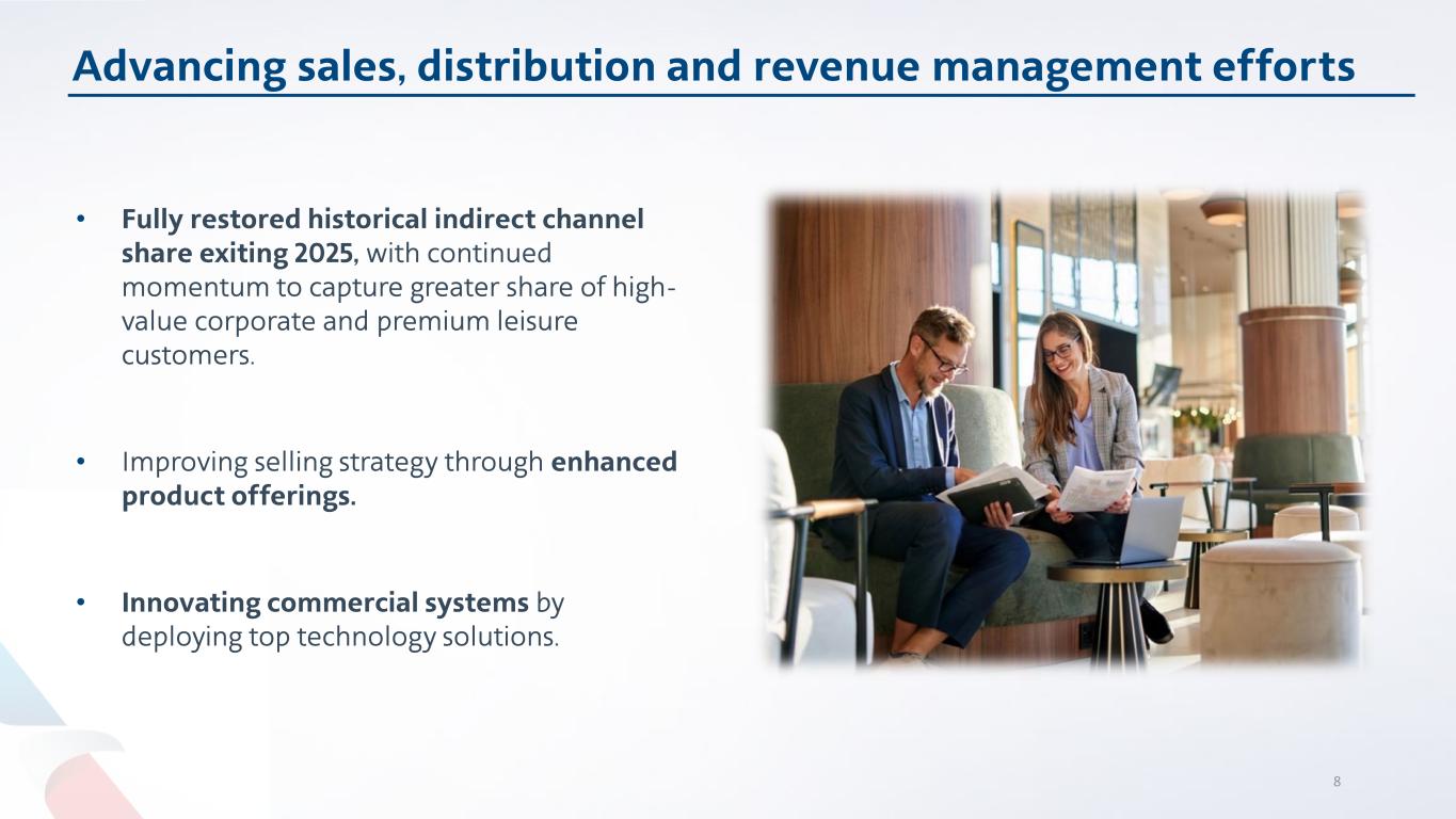 Exiting 2025, the company has successfully restored its historical share of indirect channel revenue and is focused on further growth in 2026. American is also enhancing its fare products and making improvements across commercial processes and technology to support stronger revenue performance.